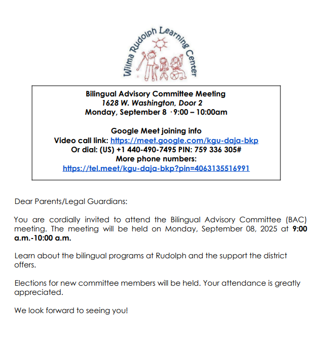 BAC meetings address issues relating to the education of English Learners (ELs) in TBE or TPI instructional contexts; provide information about CPS services, programs, and resources for students and families; and train parents to effectively participate in the overall governance of bilingual education.